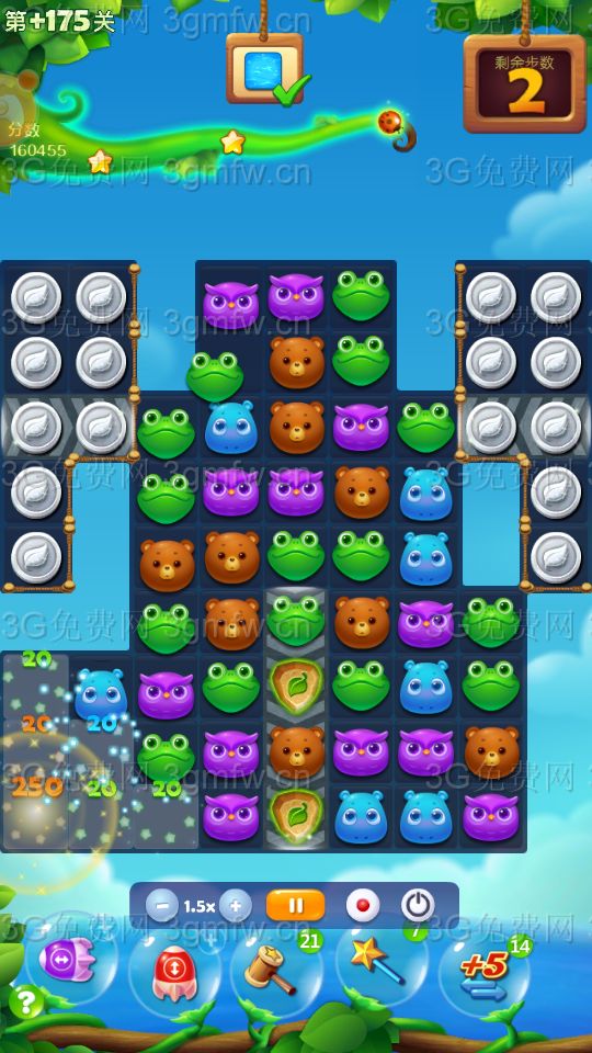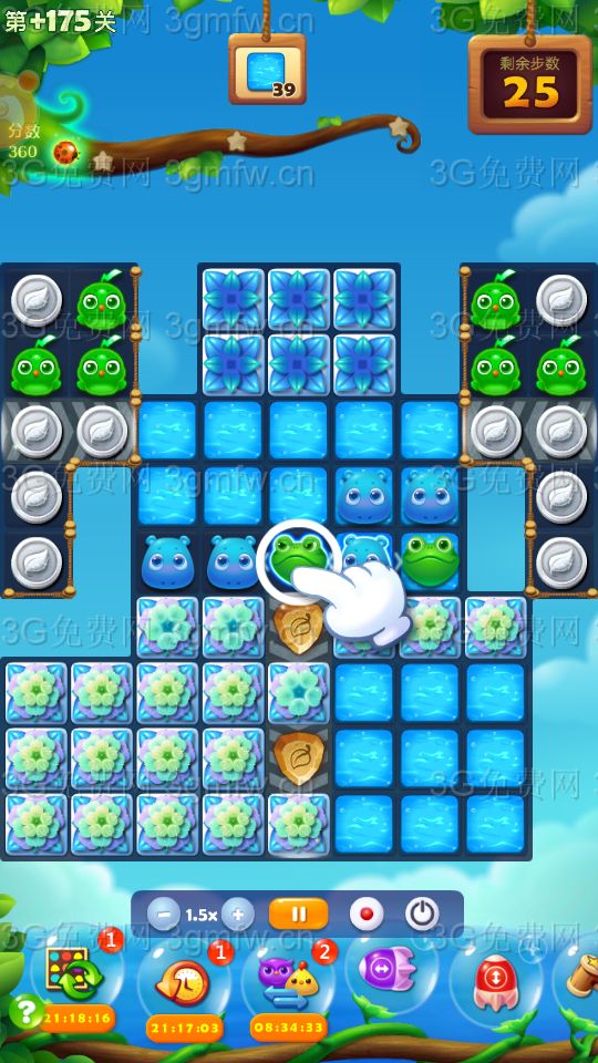 第二行三消青蛙,特效走起,闪电鸟对接,动物填充上部!(见图一)