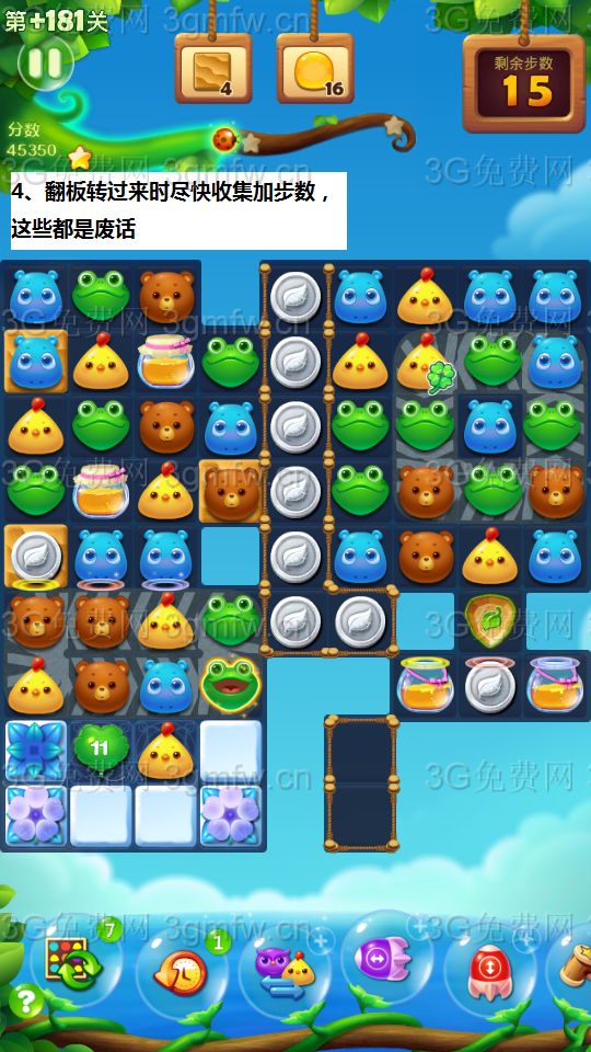 开心消消乐第+181关怎么打?开心消消乐是消除Q萌可爱的小动物们,将三个及以上相同颜色的小动物连成一条直线即可消除,老少皆宜!不会闯关的玩家快来看看G7小编带来的第+181关攻略吧!