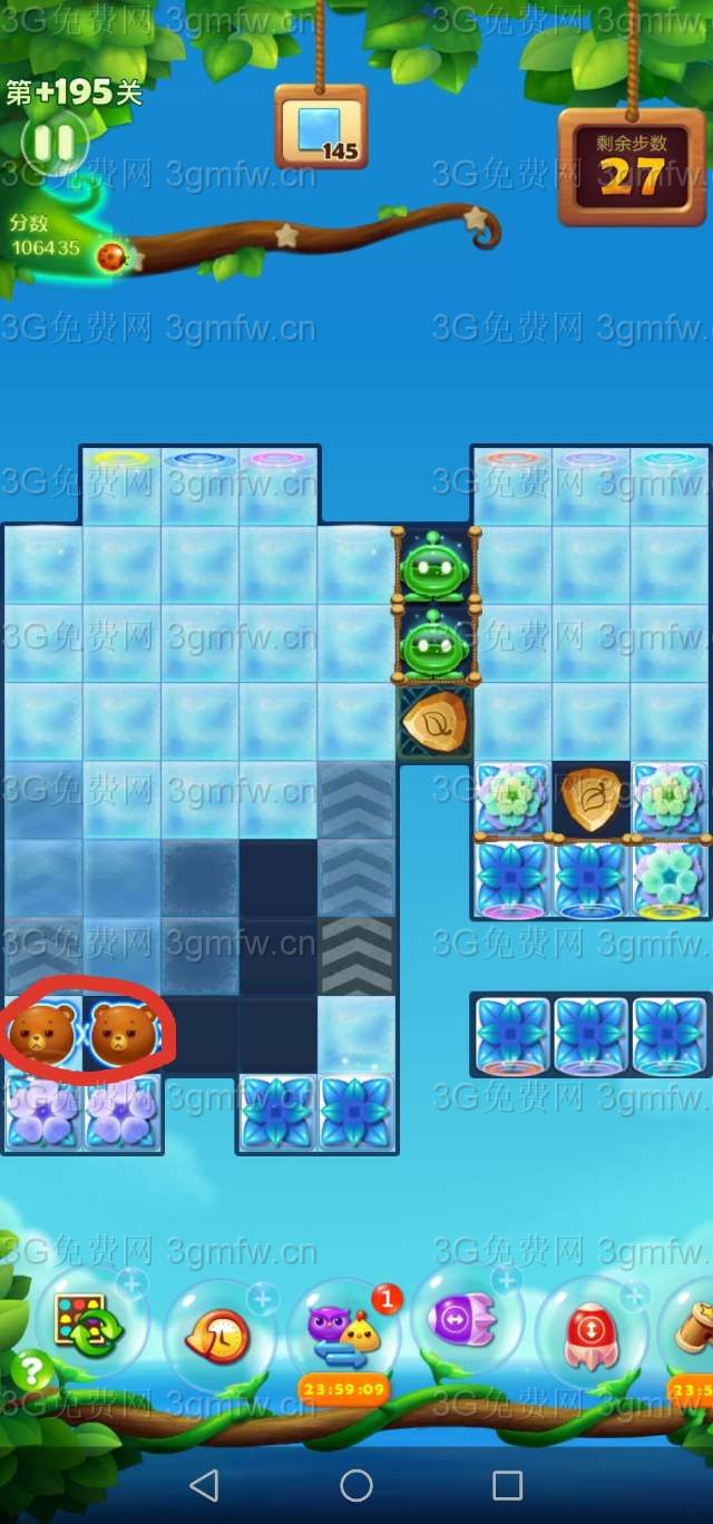 打开局面后会掉落很多蜂蜜罐子,溅出的蜂蜜可能会堵住传送门入口,要尽快用魔法石击碎。染色宝宝见机行事。