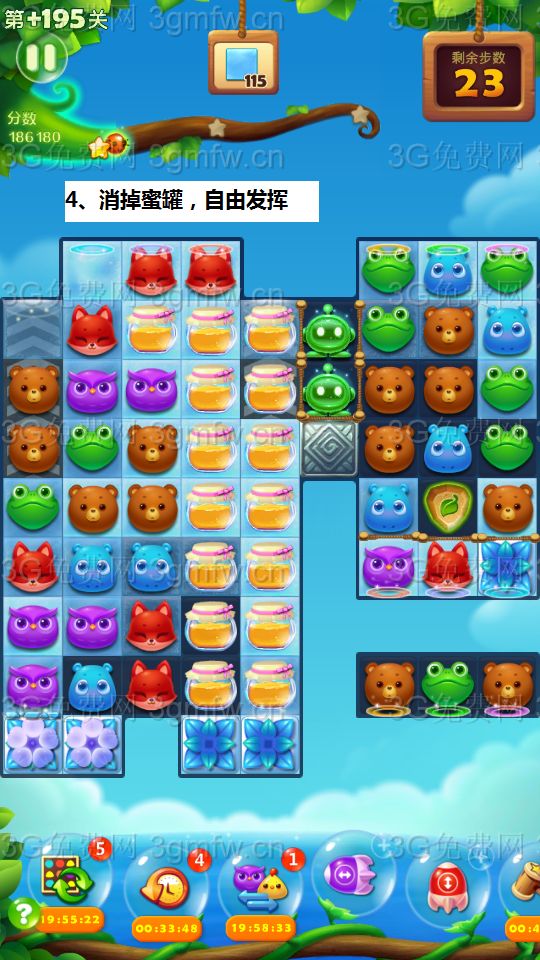 开心消消乐第+195关怎么打?开心消消乐是消除Q萌可爱的小动物们,将三个及以上相同颜色的小动物连成一条直线即可消除,老少皆宜!不会闯关的玩家快来看看G7小编带来的第+195关攻略吧!