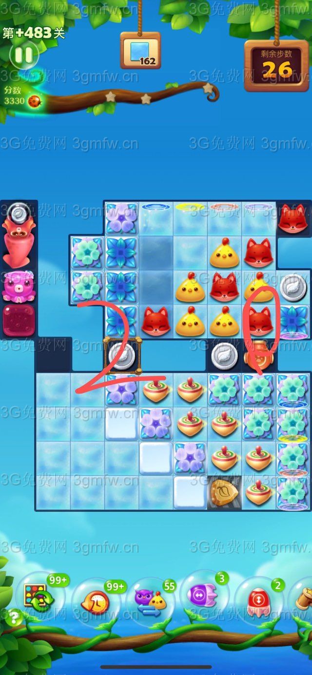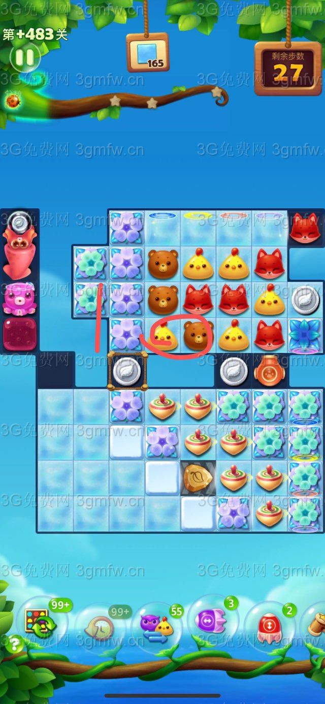 开心消消乐第+483关怎么打?开心消消乐是消除Q萌可爱的小动物们,将三个及以上相同颜色的小动物连成一条直线即可消除,老少皆宜!不会闯关的玩家快来看看G7小编带来的第+483关攻略吧!