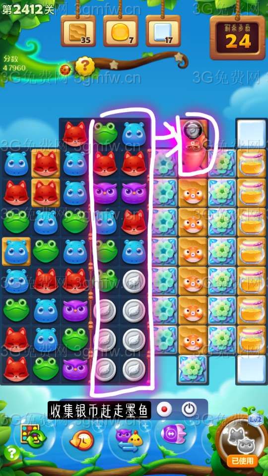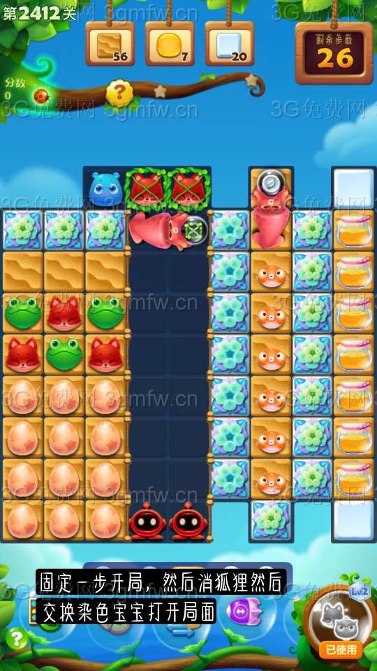 开心消消乐第2412关怎么过?它是一款以超萌超可爱动物为形象的经典消除游戏,轻松滑动手指即可操作,打发时间的最佳选择。下面G7小编为大家带来第2412关三星攻略,不会闯关的小伙伴快来看看吧!