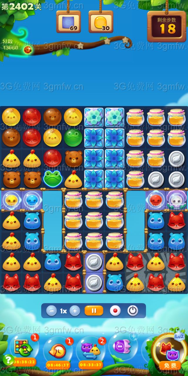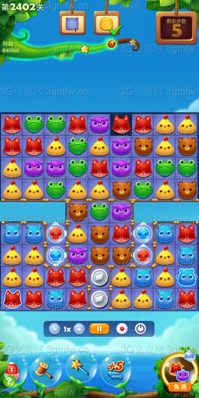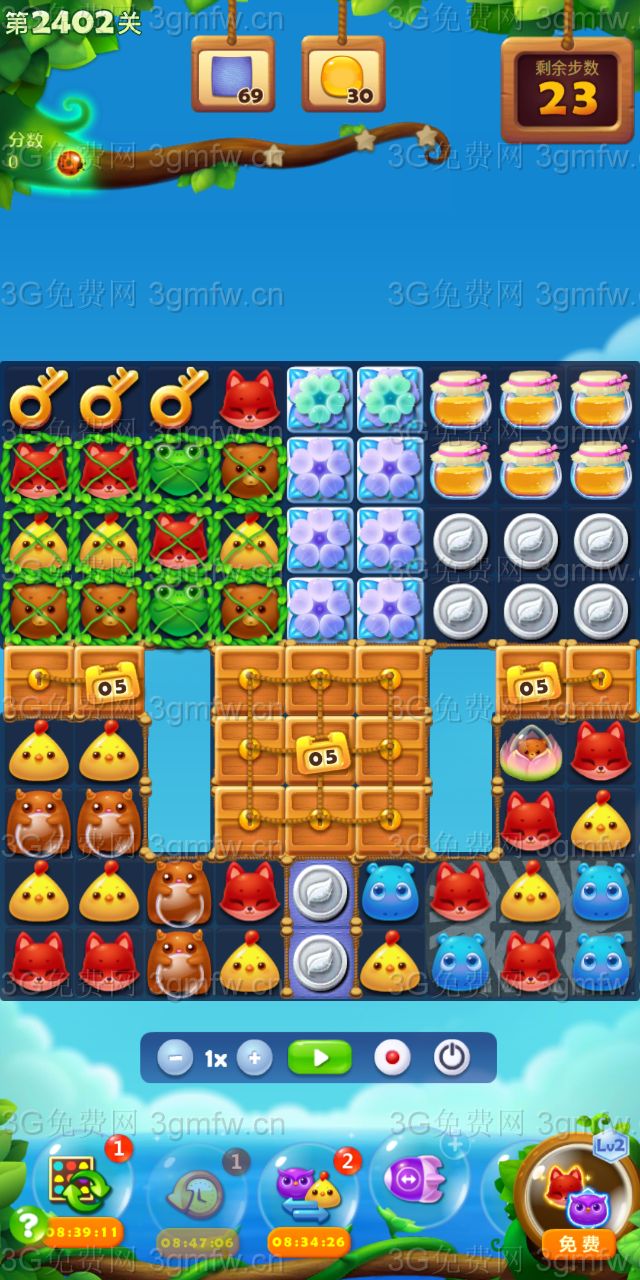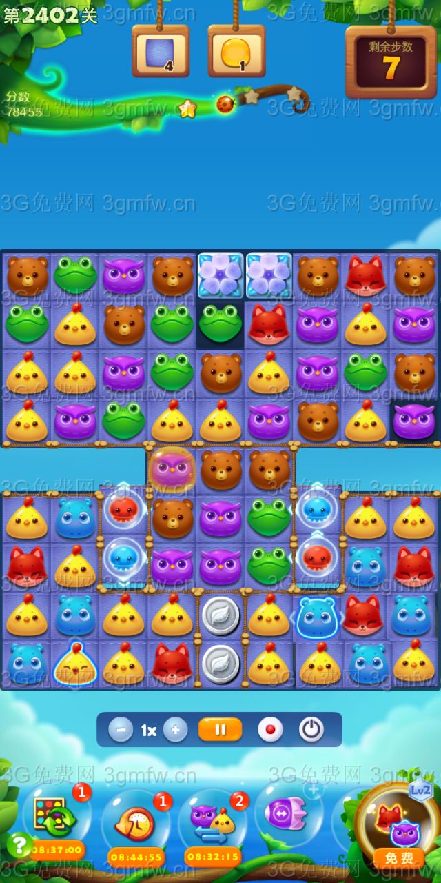 开心消消乐第2402关怎么打?开心消消乐是消除Q萌可爱的小动物们,将三个及以上相同颜色的小动物连成一条直线即可消除,老少皆宜!不会闯关的玩家快来看看G7小编带来的第2402关攻略吧!