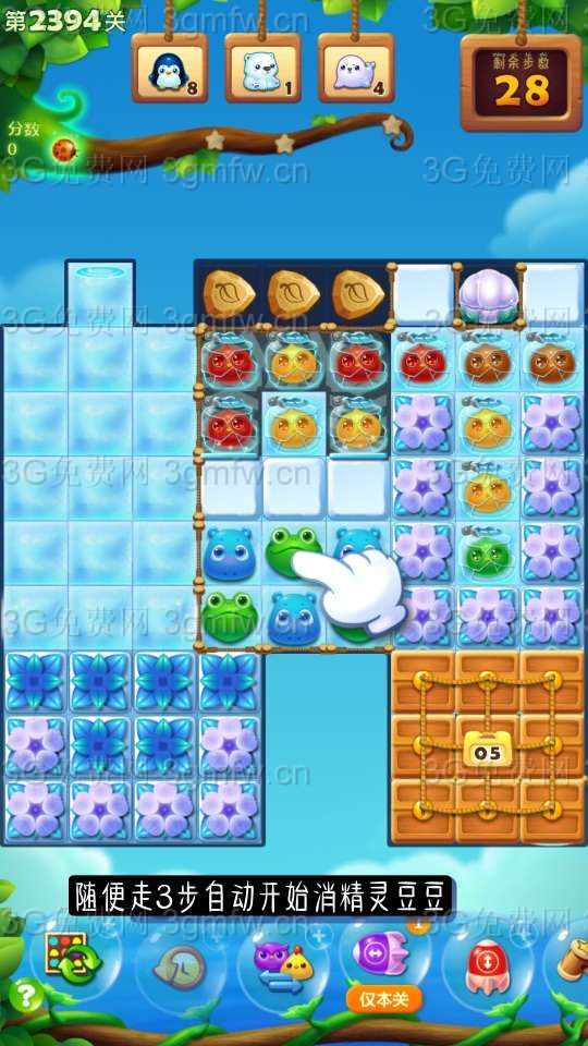 开心消消乐第2394关怎么打?开心消消乐是消除Q萌可爱的小动物们,将三个及以上相同颜色的小动物连成一条直线即可消除,老少皆宜!不会闯关的玩家快来看看G7小编带来的第2394关攻略吧!