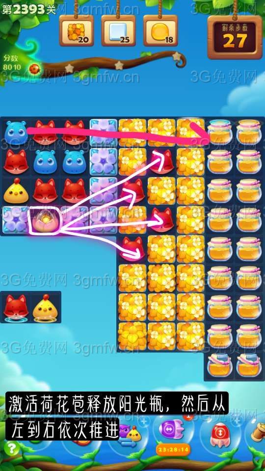 开心消消乐第2393关怎么打?开心消消乐是消除Q萌可爱的小动物们,将三个及以上相同颜色的小动物连成一条直线即可消除,老少皆宜!不会闯关的玩家快来看看G7小编带来的第2393关攻略吧!