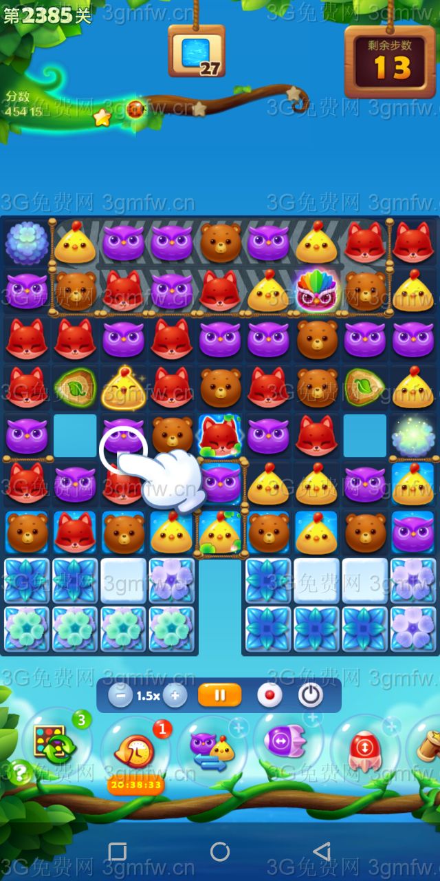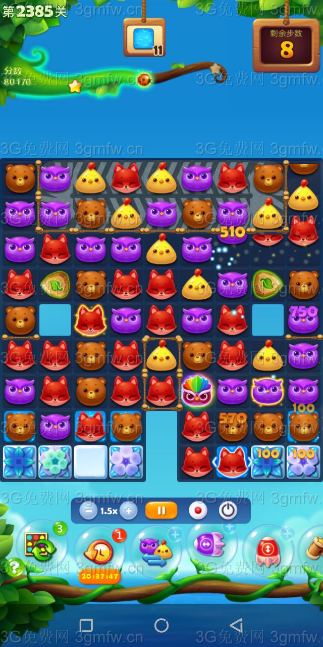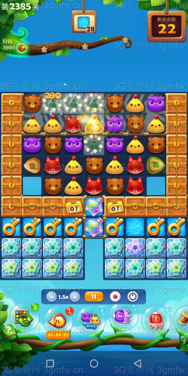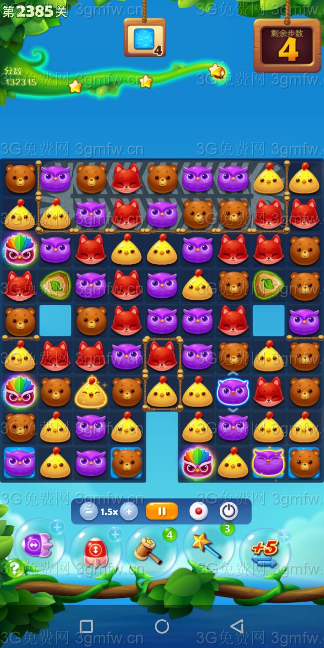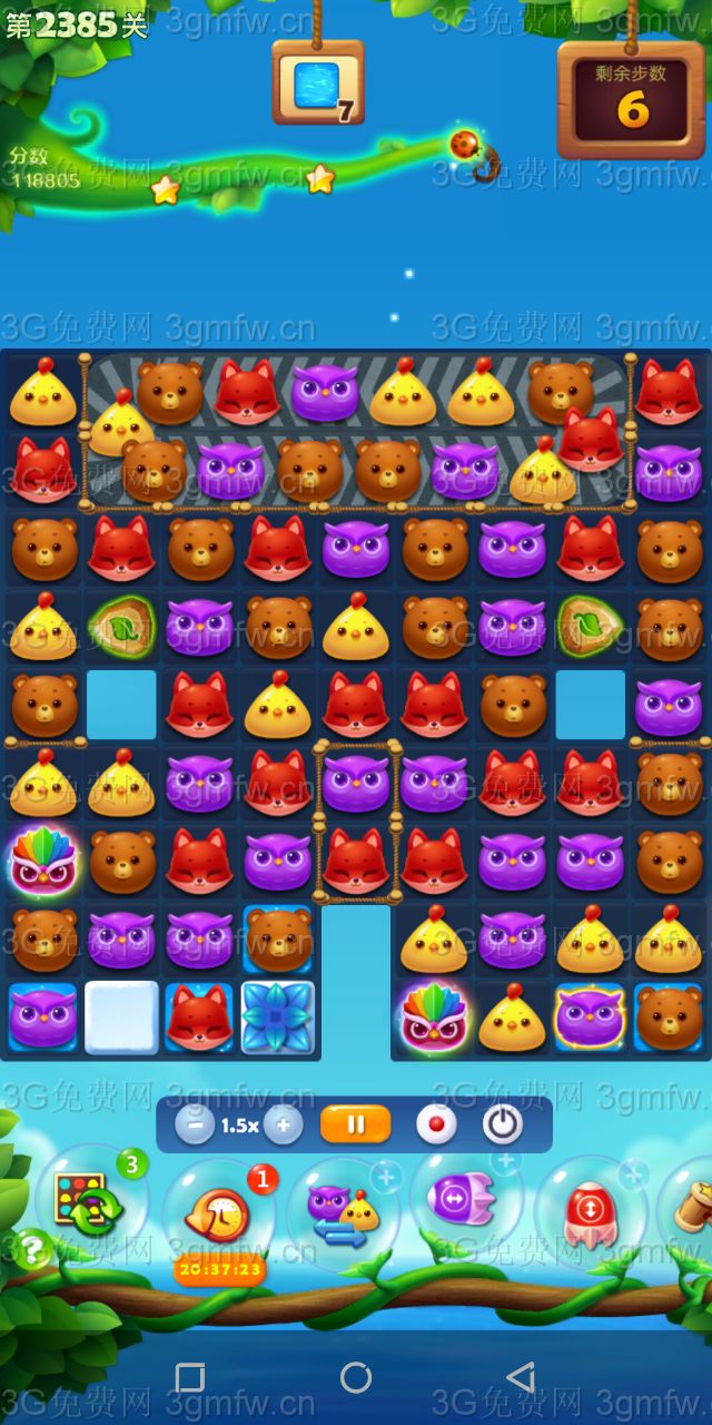 开心消消乐第2385关怎么打?开心消消乐是消除Q萌可爱的小动物们,将三个及以上相同颜色的小动物连成一条直线即可消除,老少皆宜!不会闯关的玩家快来看看G7小编带来的第2385关攻略吧!