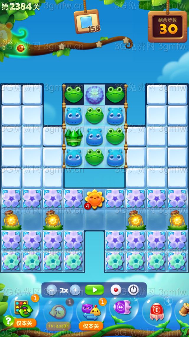 2.三消消除荷花苞释放竖向特效,后期我们的消除重点在下方雪块上。