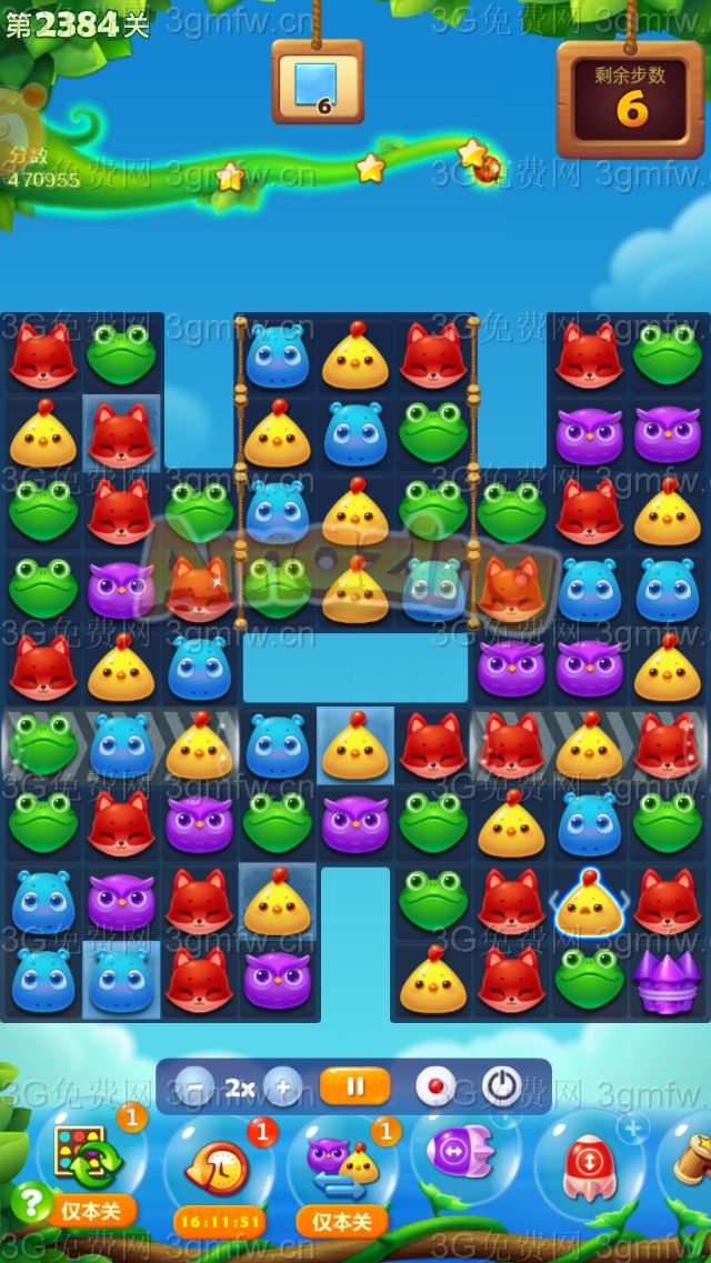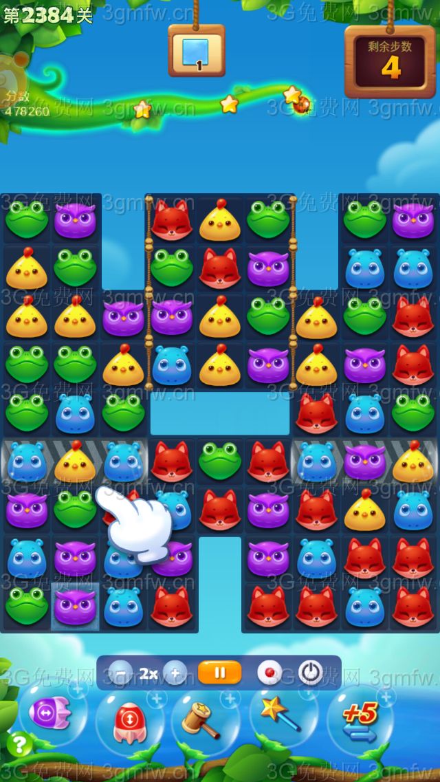 开心消消乐第2384关怎么打?开心消消乐是消除Q萌可爱的小动物们,将三个及以上相同颜色的小动物连成一条直线即可消除,老少皆宜!不会闯关的玩家快来看看G7小编带来的第2384关攻略吧!