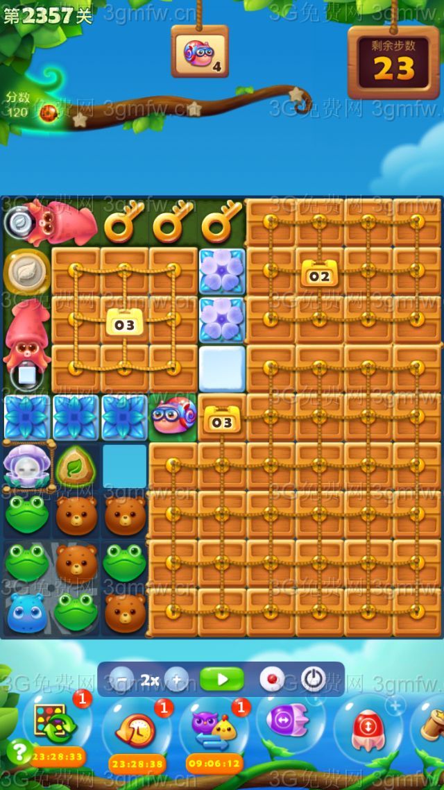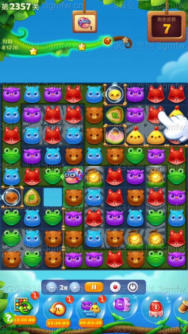 开心消消乐第2357关怎么打?开心消消乐是消除Q萌可爱的小动物们,将三个及以上相同颜色的小动物连成一条直线即可消除,老少皆宜!不会闯关的玩家快来看看G7小编带来的第2357关攻略吧!