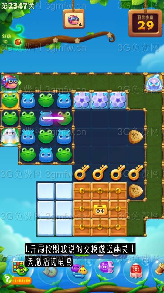 开心消消乐第2347关怎么打?开心消消乐是消除Q萌可爱的小动物们,将三个及以上相同颜色的小动物连成一条直线即可消除,老少皆宜!不会闯关的玩家快来看看G7小编带来的第2347关攻略吧!