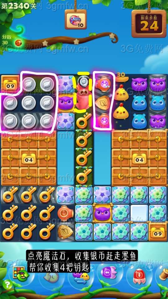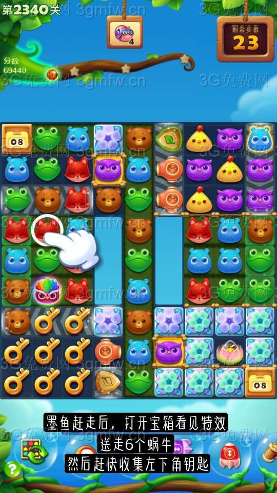 开心消消乐第2340关怎么打?开心消消乐是消除Q萌可爱的小动物们,将三个及以上相同颜色的小动物连成一条直线即可消除,老少皆宜!不会闯关的玩家快来看看G7小编带来的第2340关攻略吧!