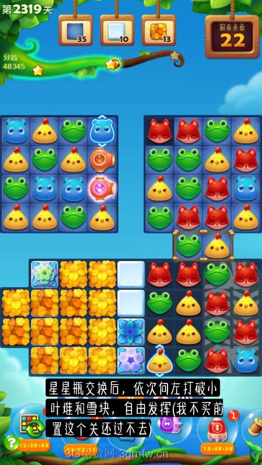 开心消消乐第2319关怎么打?开心消消乐是消除Q萌可爱的小动物们,将三个及以上相同颜色的小动物连成一条直线即可消除,老少皆宜!不会闯关的玩家快来看看G7小编带来的第2319关攻略吧!