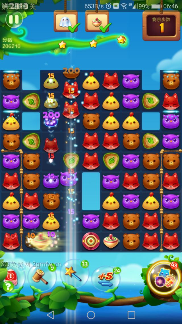 2、达到通关要求之后剩余步数会随机形成特效获得大量额外积分;