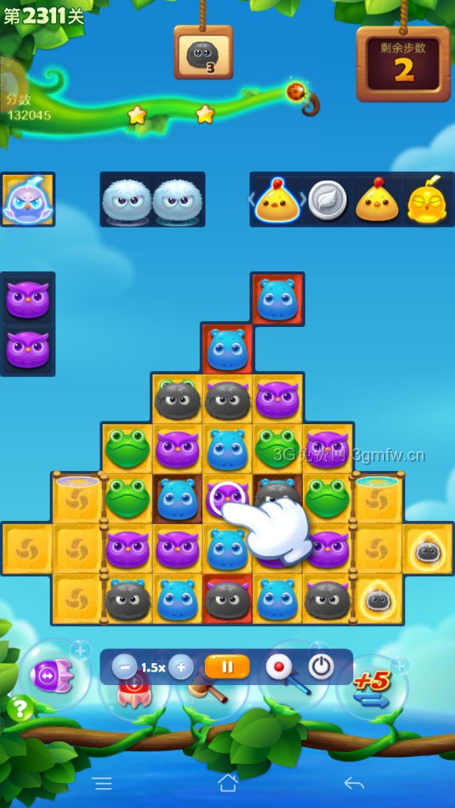 开心消消乐第2311关怎么过?它是一款以超萌超可爱的动物为形象的经典消除游戏,轻松滑动手指即可操作,打发时间的最佳选择。下面G7小编为大家带来第2311关三星攻略,不会闯关的小伙伴快来看看吧!