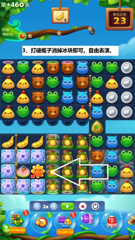 开心消消乐第+460关怎么打?开心消消乐是消除Q萌可爱的小动物们,将三个及以上相同颜色的小动物连成一条直线即可消除,老少皆宜!不会闯关的玩家快来看看G7小编带来的第+460关攻略吧!