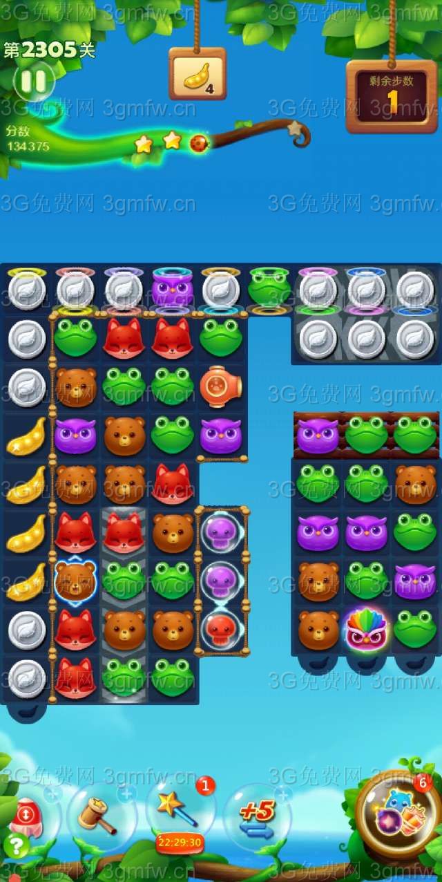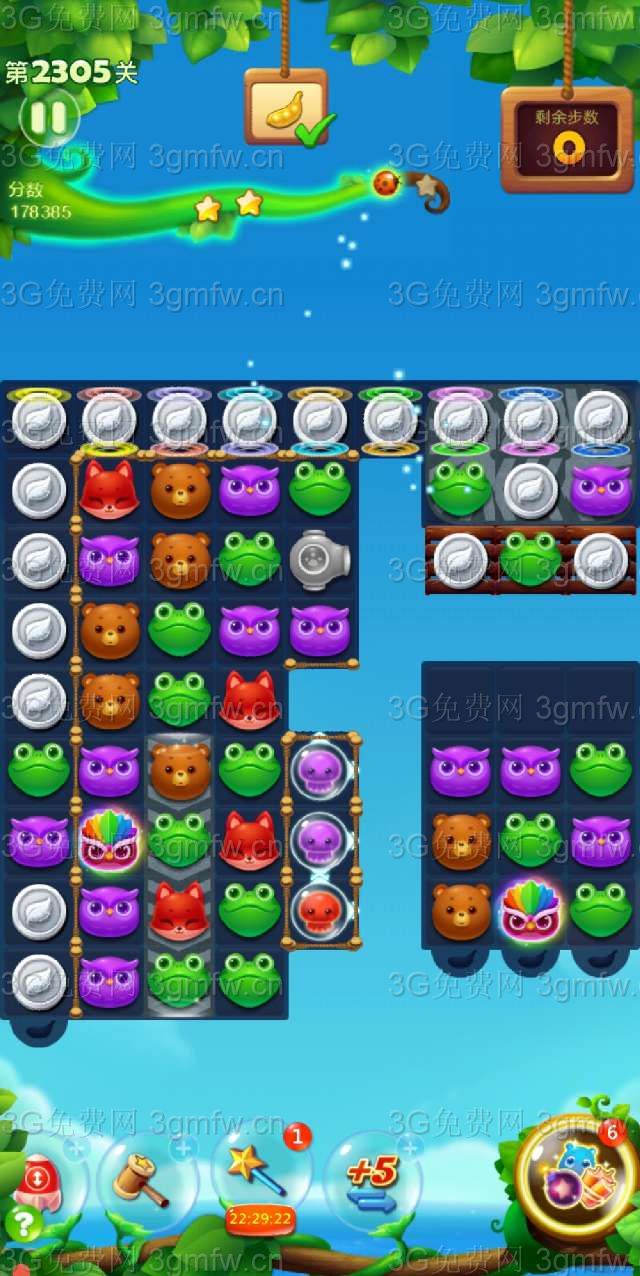 开心消消乐第2305关怎么过?它是一款以超萌超可爱的动物为形象的经典消除游戏,轻松滑动手指即可操作,打发时间的最佳选择。下面G7小编为大家带来第2305关三星攻略,不会闯关的小伙伴快来看看吧!