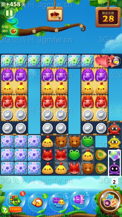 开心消消乐第+458关怎么打?开心消消乐是消除Q萌可爱的小动物们,将三个及以上相同颜色的小动物连成一条直线即可消除,老少皆宜!不会闯关的玩家快来看看G7小编带来的第+458关攻略吧!