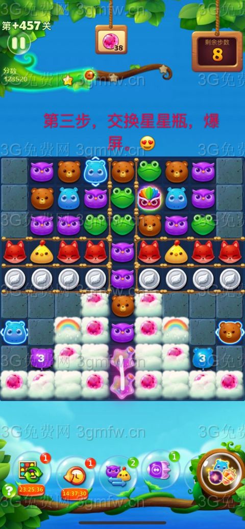 开心消消乐精英关457关怎么过?它是一款以超萌超可爱的动物为形象的经典消除游戏,轻松滑动手指即可操作,打发时间的最佳选择。下面G7小编为大家带来精英关457关三星攻略,不会闯关的小伙伴快来看看吧!