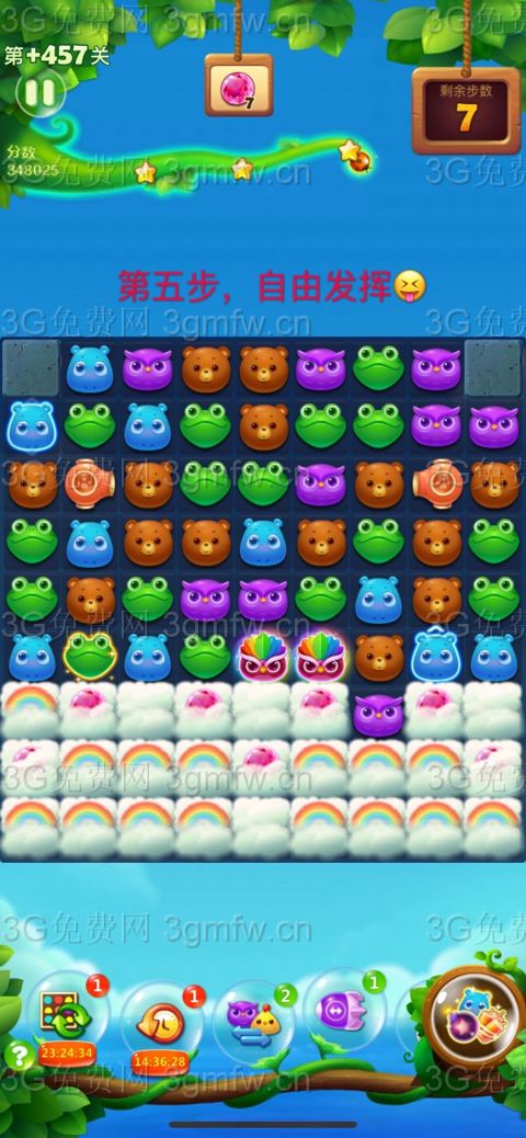 开心消消乐精英关457关通关攻略分享到此,更多精彩的游戏攻略,欢迎关注G74软件园!每天为大家持续更新~