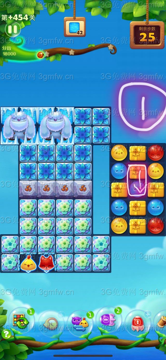 开心消消乐第+454关怎么打?开心消消乐是消除Q萌可爱的小动物们,将三个及以上相同颜色的小动物连成一条直线即可消除,老少皆宜!不会闯关的玩家快来看看G7小编带来的第+454关攻略吧!
