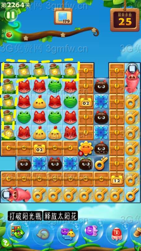 开心消消乐第2264关怎么打?开心消消乐是消除Q萌可爱的小动物们,将三个及以上相同颜色的小动物连成一条直线即可消除,老少皆宜!不会闯关的玩家快来看看G7小编带来的第2264关攻略吧!