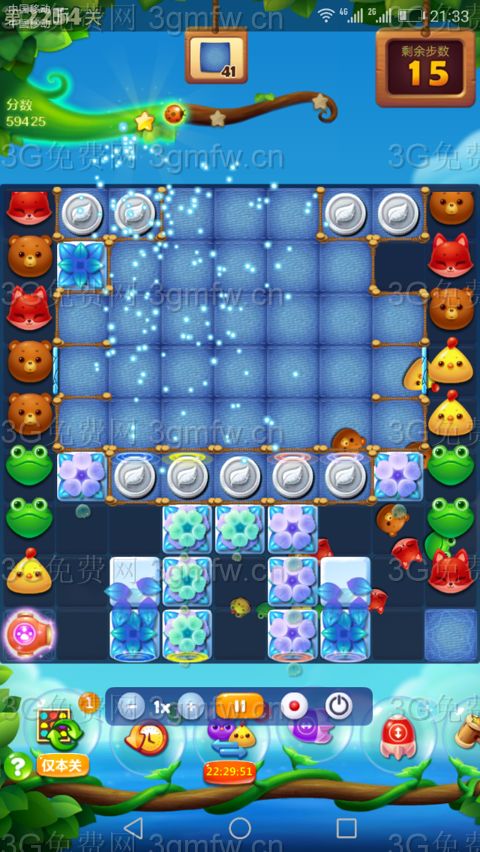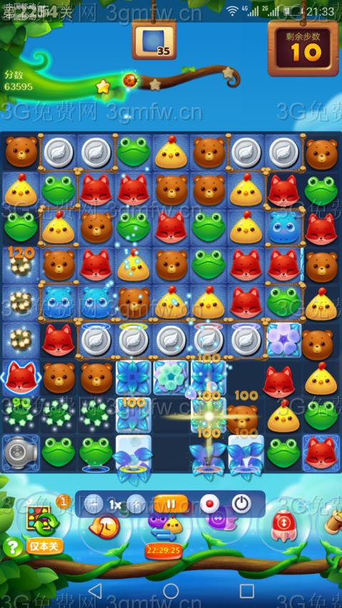 固定起步,移动兰色河马,消蛋,点亮闪电鸟,再收银币,点亮星星,互换凊屏,攻炮台消冰块,裸过,可惜只是二星,以后再补星吧。