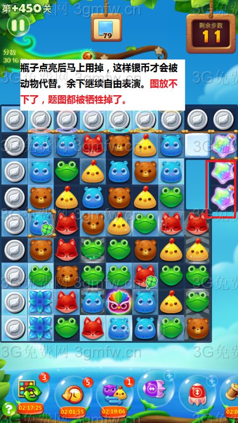 开心消消乐隐藏关450关怎么过?它是一款以超萌超可爱的动物为形象的经典消除游戏,轻松滑动手指即可操作,打发时间的最佳选择。下面G7小编为大家带来隐藏关450关三星攻略,不会闯关的小伙伴快来看看吧!
