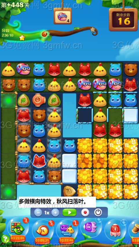2、达到通关要求之后剩余步数会随机形成特效获得大量额外积分;