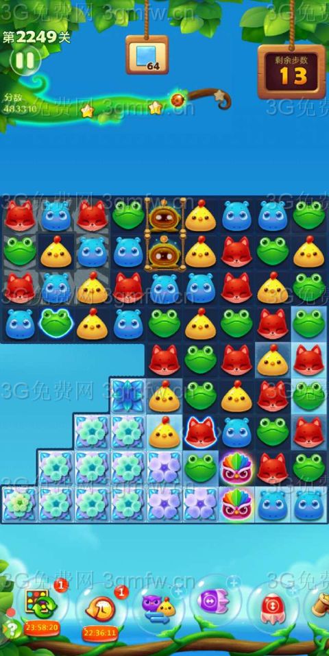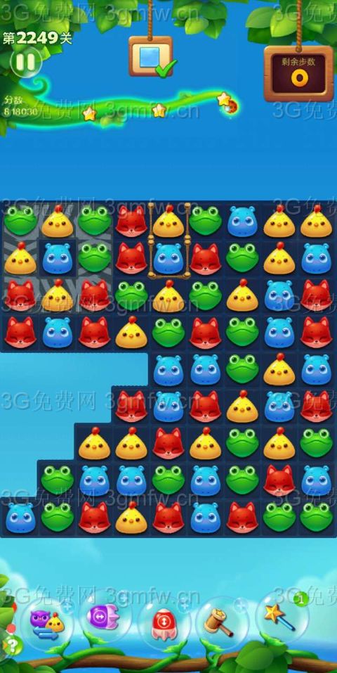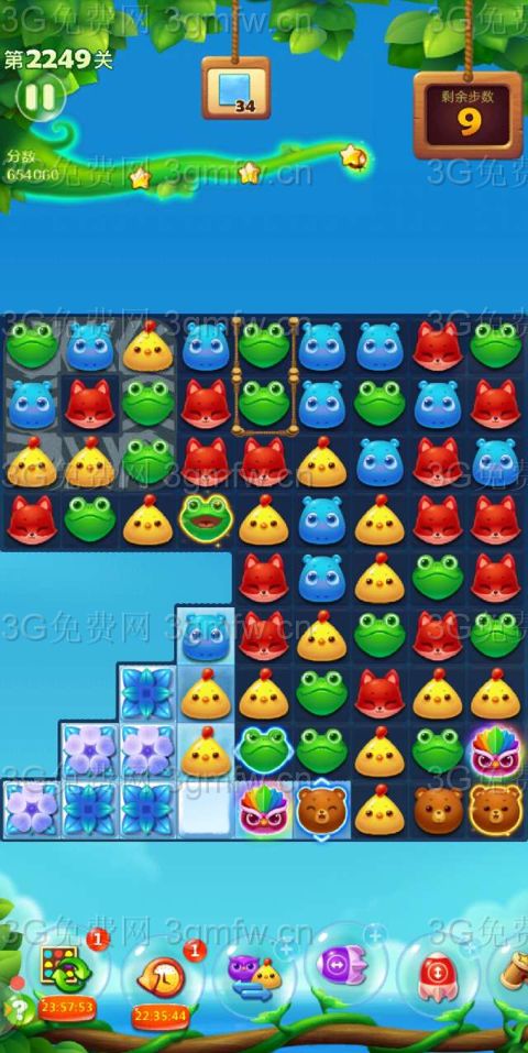 开心消消乐第2249关怎么打?开心消消乐是消除Q萌可爱的小动物们,将三个及以上相同颜色的小动物连成一条直线即可消除,老少皆宜!不会闯关的玩家快来看看G7小编带来的第2249关攻略吧!