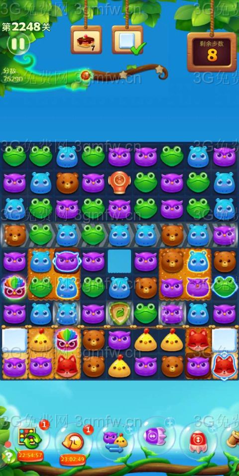 开心消消乐第2248关怎么打?开心消消乐是消除Q萌可爱的小动物们,将三个及以上相同颜色的小动物连成一条直线即可消除,老少皆宜!不会闯关的玩家快来看看G7小编带来的第2248关攻略吧!