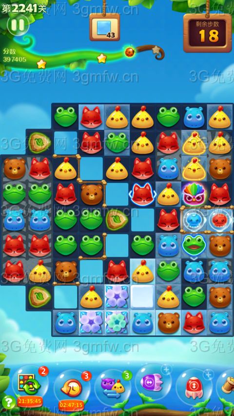 开心消消乐第2241关怎么过?它是一款以超萌超可爱的动物为形象的经典消除游戏,轻松滑动手指即可操作,打发时间的最佳选择。下面G7小编为大家带来第2241关三星攻略,不会闯关的小伙伴快来看看吧!