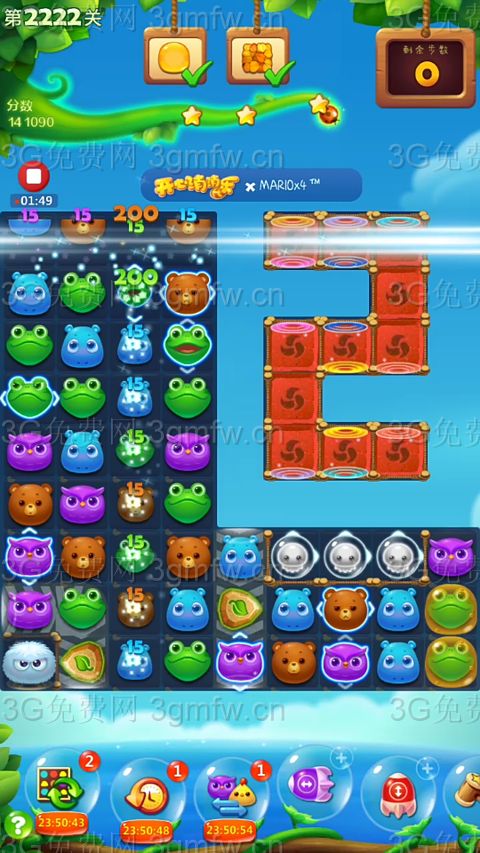2、达到通关要求之后剩余步数会随机形成特效获得大量额外积分;