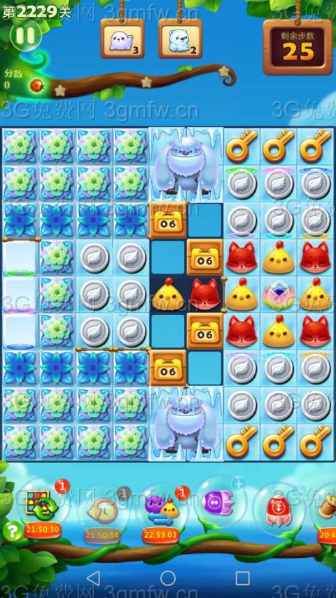 围绕道具打,两对雪人中间的炸出现就交换,引爆雪人,继续利用道具,同时注意左边的组彩鸟机会,不要浪费了。两把三星过关!加三了。好运!