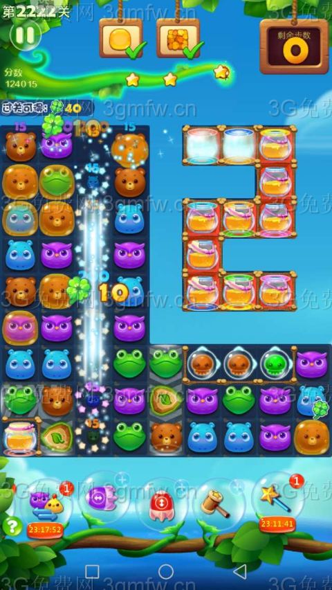 开心消消乐第2222关怎么打?开心消消乐是消除Q萌可爱的小动物们,将三个及以上相同颜色的小动物连成一条直线即可消除,老少皆宜!不会闯关的玩家快来看看G7小编带来的第2222关攻略吧!