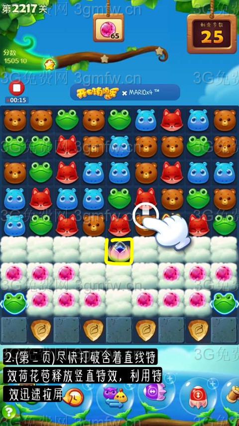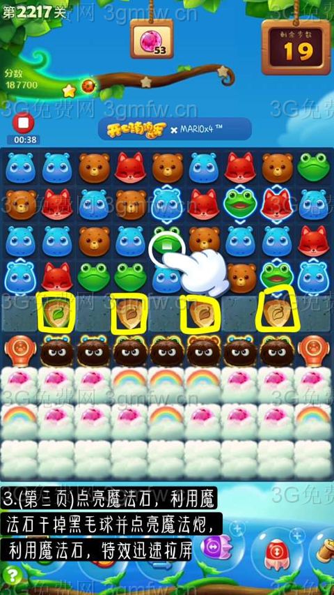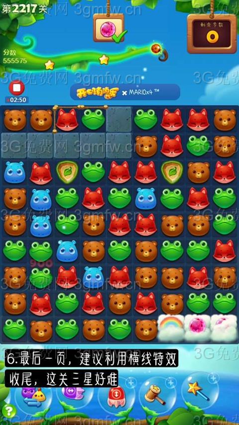 开心消消乐第2217关怎么过?它是一款以超萌超可爱的动物为形象的经典消除游戏,轻松滑动手指即可操作,打发时间的最佳选择。下面G7小编为大家带来第2217关三星攻略,不会闯关的小伙伴快来看看吧!