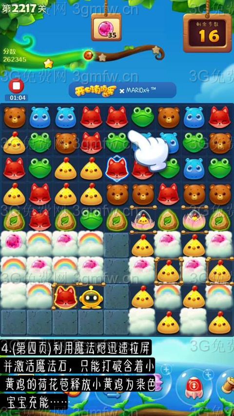 4.只能利用魔法石打破荷花苞释放小黄鸡为染色宝宝充能。