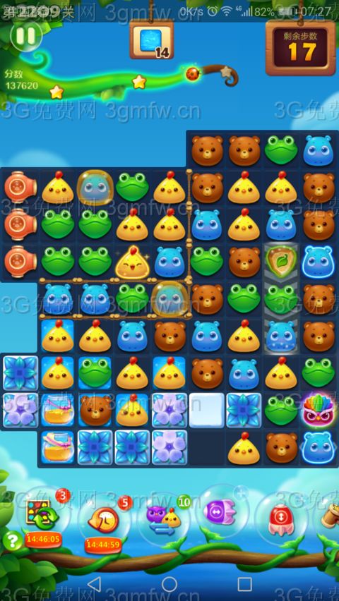 我最喜欢的关卡,減压关,狂轰滥炸就可以了,要把冰块消完,把蜂蜜罐打完,就差不多了!