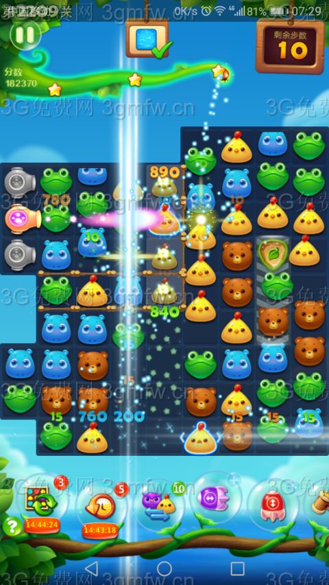 2、达到通关要求之后剩余步数会随机形成特效获得大量额外积分;
