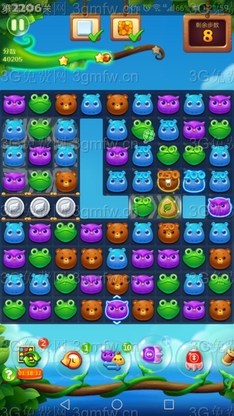 开心消消乐第2206关怎么打?开心消消乐是消除Q萌可爱的小动物们,将三个及以上相同颜色的小动物连成一条直线即可消除,老少皆宜!不会闯关的玩家快来看看G7小编带来的第2206关攻略吧!