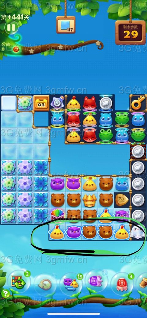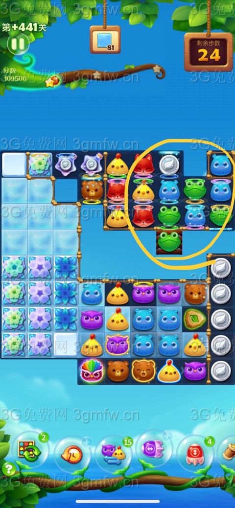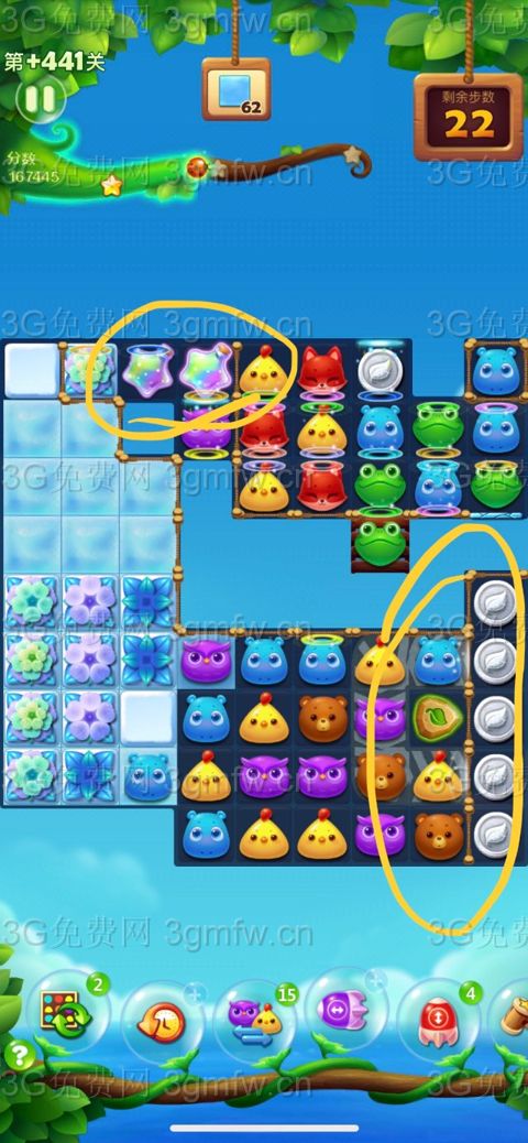 开心消消乐第+441关怎么过?它是一款以超萌超可爱的动物为形象的经典消除游戏,轻松滑动手指即可操作,打发时间的最佳选择。下面G7小编为大家带来第+441关三星攻略,不会闯关的小伙伴快来看看吧!