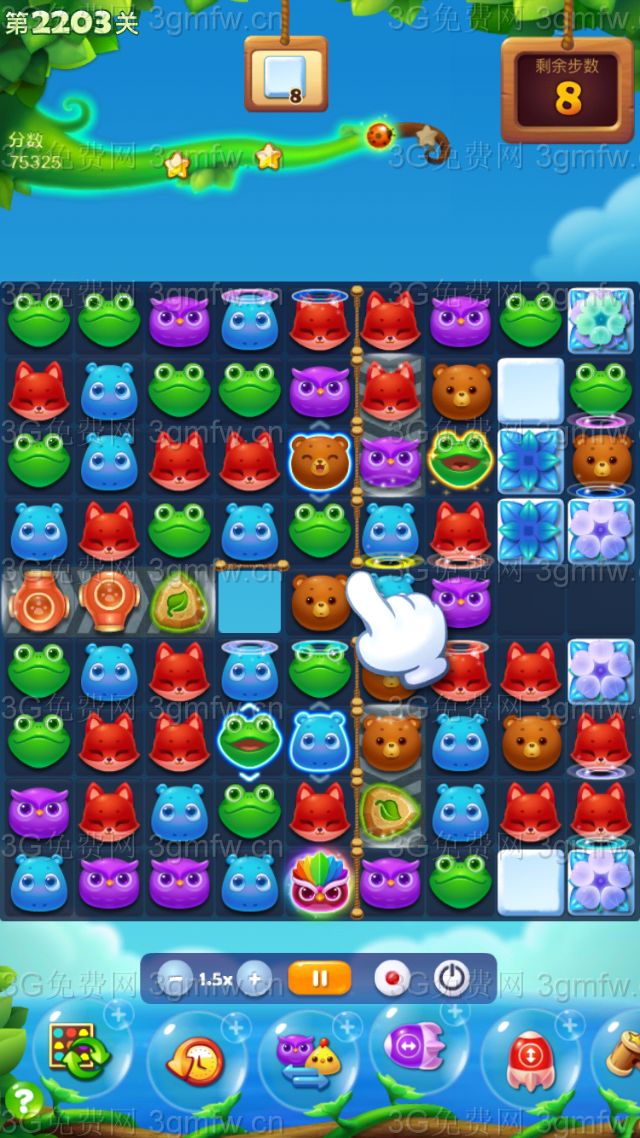 开心消消乐第2203关怎么过?它是一款以超萌超可爱的动物为形象的经典消除游戏,轻松滑动手指即可操作,打发时间的最佳选择。下面G7小编为大家带来第2203关三星攻略,不会闯关的小伙伴快来看看吧!