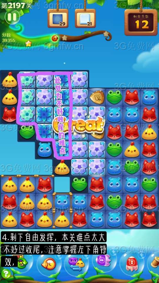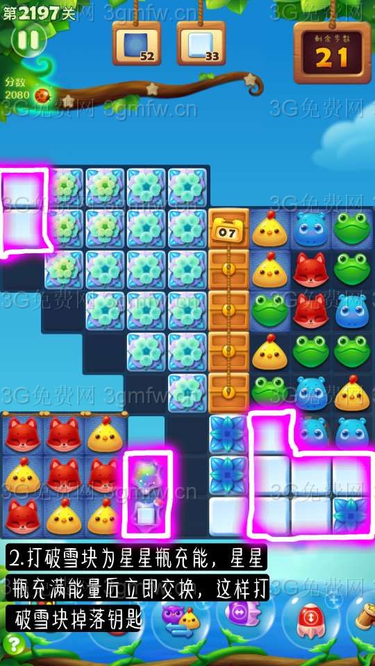 以上就是小编为大家整理的开心消消乐2197关三星攻略,更多开心消消乐的游戏关卡,欢迎关注G74软件园!
