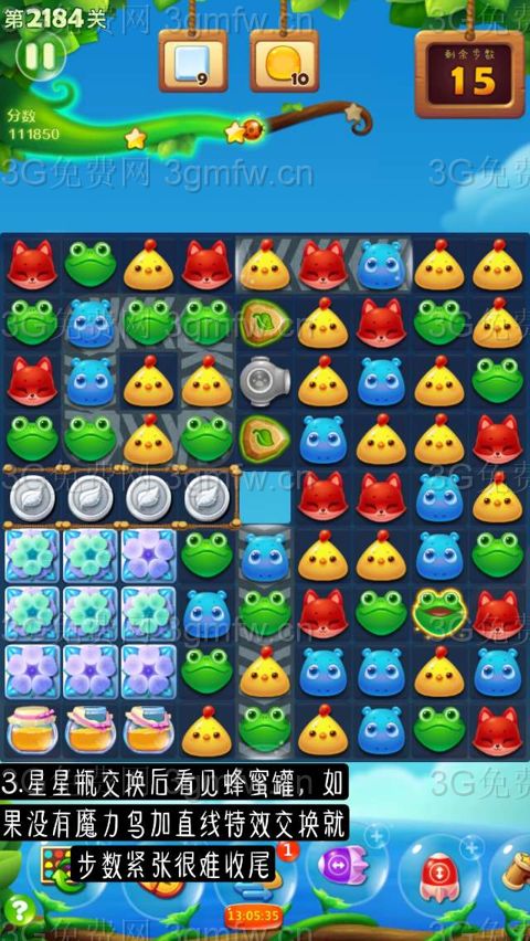 开心消消乐第2184关怎么打?开心消消乐是消除Q萌可爱的小动物们,将三个及以上相同颜色的小动物连成一条直线即可消除,老少皆宜!不会闯关的玩家快来看看G7小编带来的第2184关攻略吧!