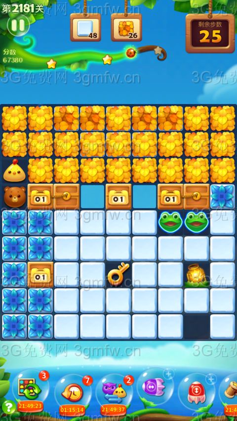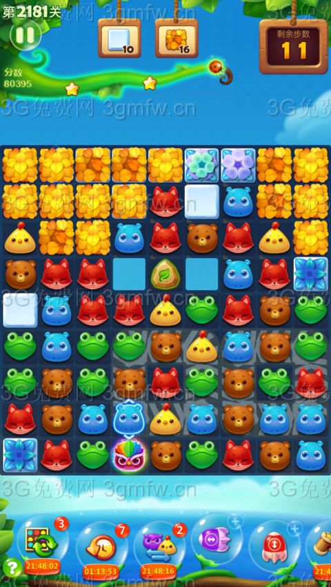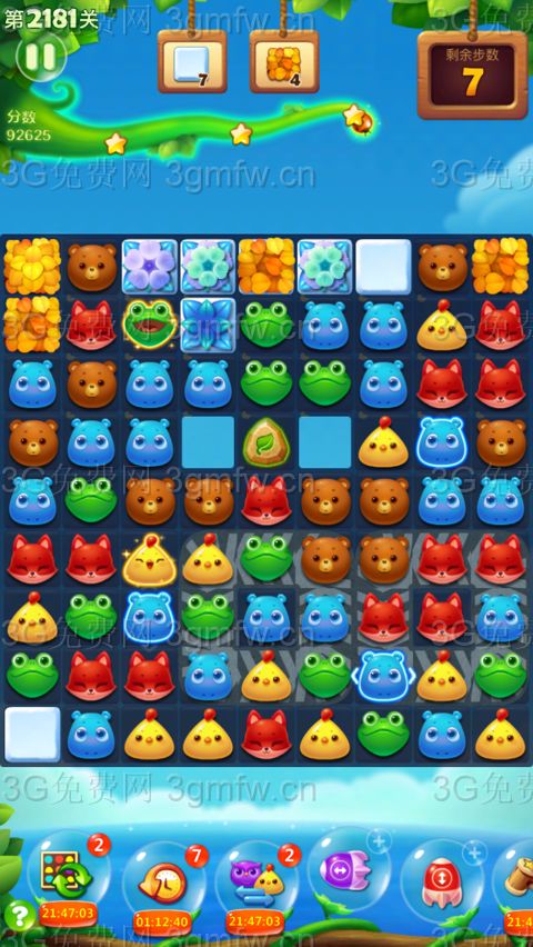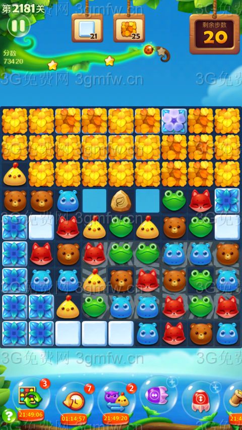 开心消消乐第2181关怎么打?开心消消乐是消除Q萌可爱的小动物们,将三个及以上相同颜色的小动物连成一条直线即可消除,老少皆宜!不会闯关的玩家快来看看G7小编带来的第2181关攻略吧!