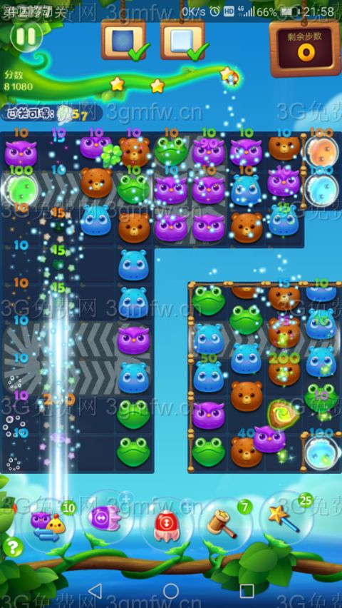 2、达到通关要求之后剩余步数会随机形成特效获得大量额外积分;