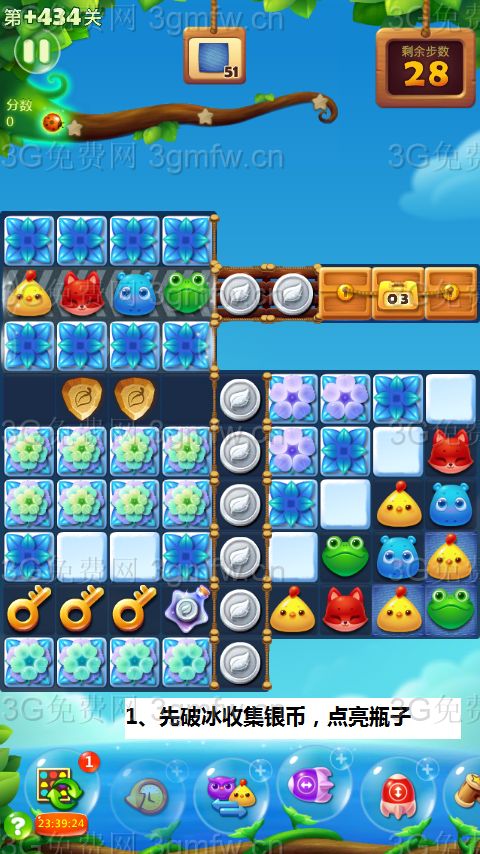 开心消消乐隐藏关434关怎么打?开心消消乐是消除Q萌可爱的小动物们,将三个及以上相同颜色的小动物连成一条直线即可消除,老少皆宜!不会闯关的玩家快来看看G7小编带来的隐藏关434关攻略吧!