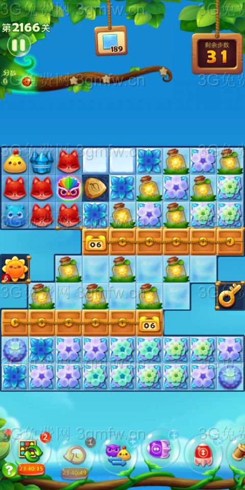 加三,有了道具,激活魔法石,打到亲自太阳花清屏一次,拿到钥匙,再打瓶子和花团,重点是组特效和鸟,加油吧。