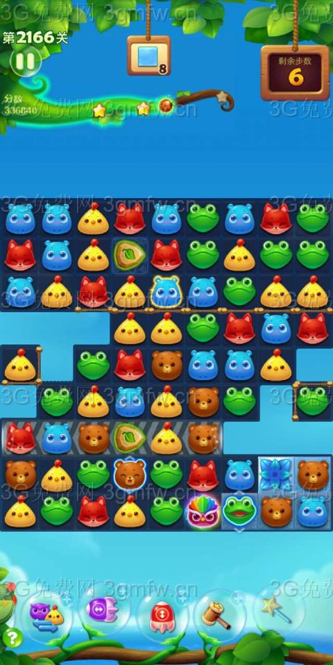 开心消消乐第2166关怎么打?开心消消乐是消除Q萌可爱的小动物们,将三个及以上相同颜色的小动物连成一条直线即可消除,老少皆宜!不会闯关的玩家快来看看G7小编带来的第2166关攻略吧!
