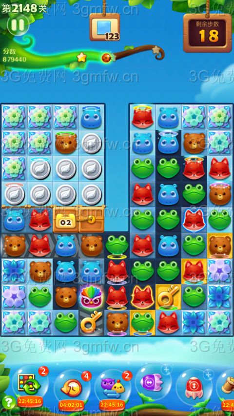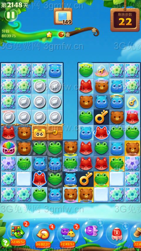 ②,拿钥匙了,寻找一切机会暴击莲花收集钥匙。此时传送口基本打开,围绕传送门消除,连消非常给力的,分数直上。